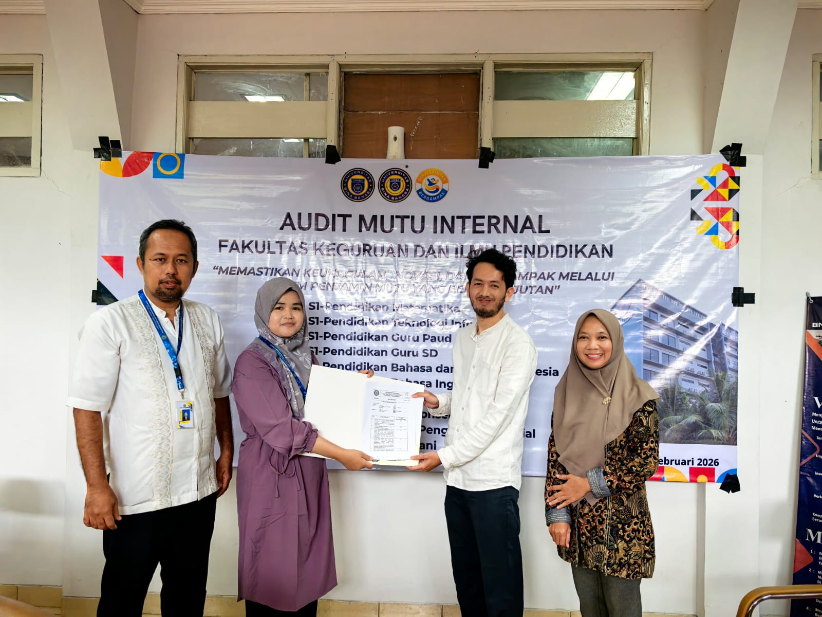 Serang, February 7, 2026 – The Faculty of Teacher Training and Education (FKIP) of Universitas Bina Bangsa (UNIBA) conducted the 2025 Internal Quality Audit (Audit Mutu Internal/AMI) on February 6–7, 2026. The audit involved the English Education Study Program (PBI) along with nine other study programs within FKIP UNIBA as part of the implementation of the Internal Quality Assurance System (SPMI).